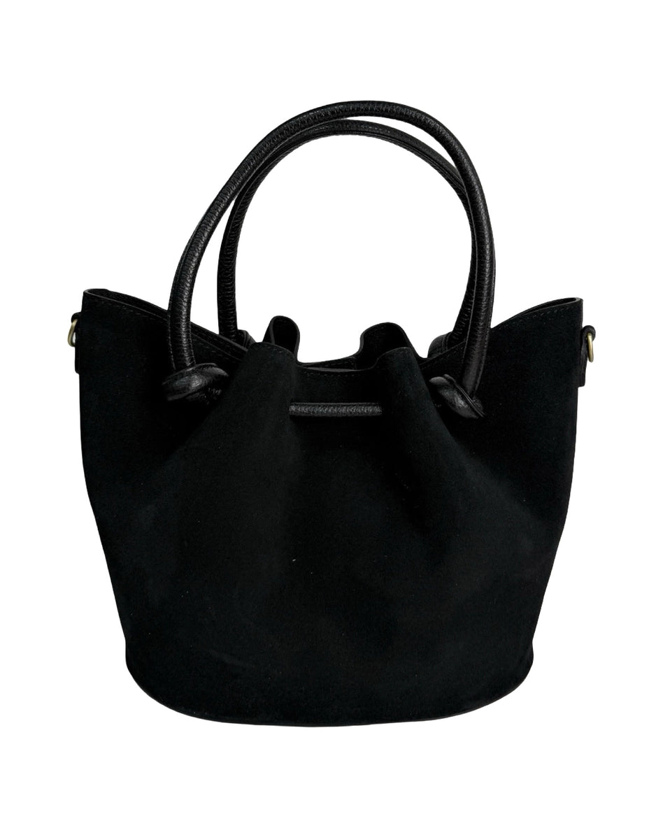 The Vivienne Bag Suede in Black is a refined Italian creation crafted from supple suede leather with a genuine dollar leather interior. Its soft yet structured form is elevated by two distinctive knots on the handles, adding subtle elegance. Featuring a reinforced base with metal feet for stability and a removable zippered pouch for organized storage, it perfectly blends practicality with luxury. Designed to be carried as a bag or over the shoulder, this timeless piece closes with a central snap button, making it an indispensable addition to any sophisticated wardrobe.