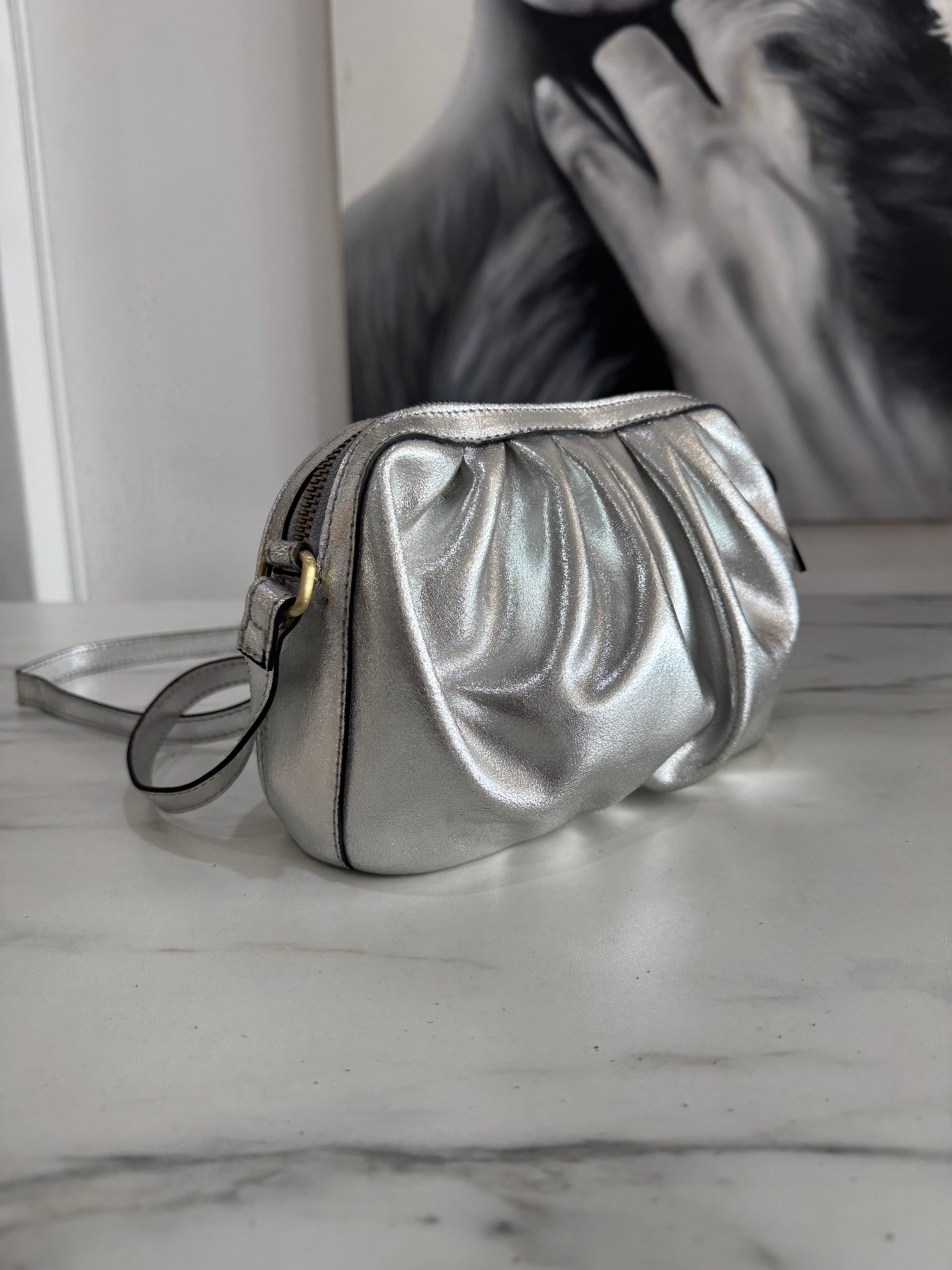 The Nina is your go-to bag for any occasion—stunning enough for evening events yet versatile enough for daytime wear. Crafted in lustrous metallic leather, this party-perfect silhouette strikes the ideal balance between statement piece and everyday companion. The adjustable crossbody strap lets you carry it your way, whether slung across your body or held by hand. Compact yet spacious, it's the festive finishing touch your wardrobe's been waiting for.