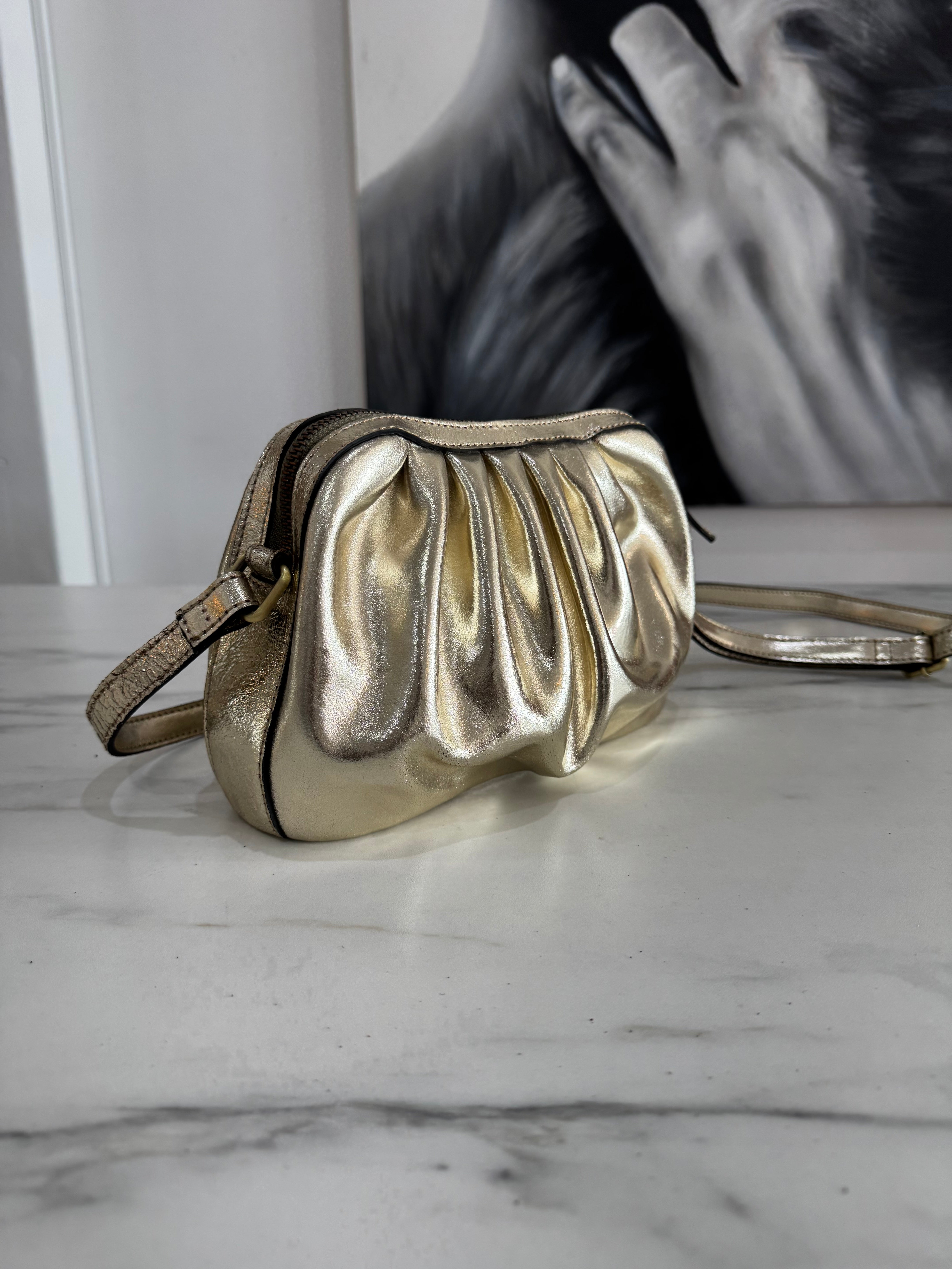 The Nina is your go-to bag for any occasion—stunning enough for evening events yet versatile enough for daytime wear. Crafted in lustrous metallic leather, this party-perfect silhouette strikes the ideal balance between statement piece and everyday companion. The adjustable crossbody strap lets you carry it your way, whether slung across your body or held by hand. Compact yet spacious, it's the festive finishing touch your wardrobe's been waiting for.