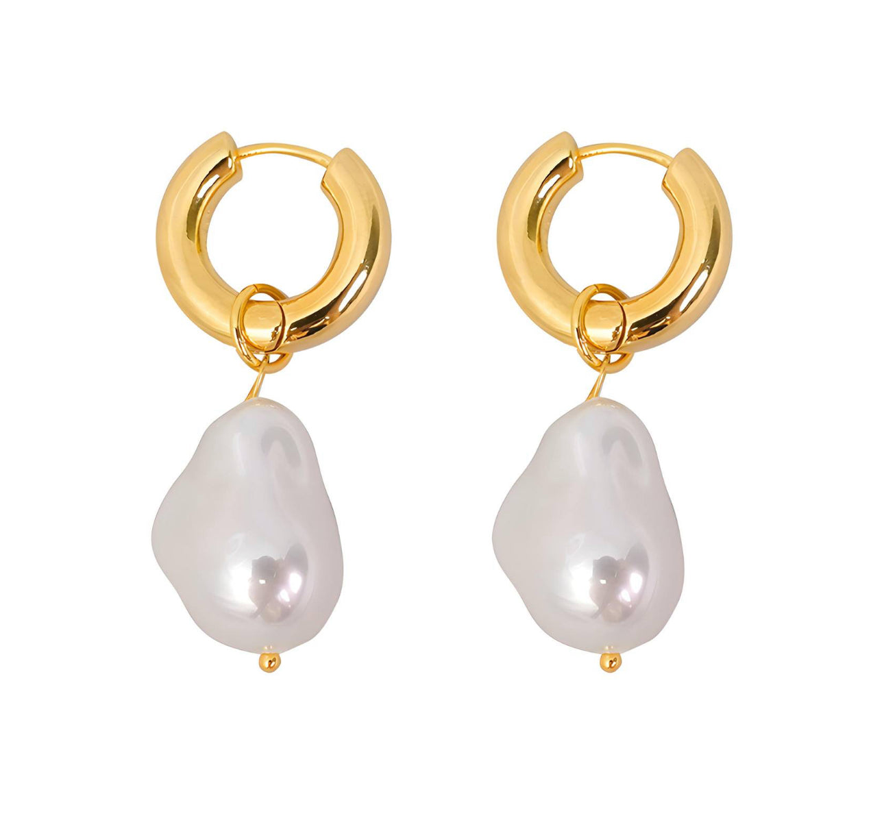 Add a touch of magic to your look with these playful gold baroque pearl earrings. Their unique shapes and lustrous shine effortlessly elevate any outfit, making you the star of every room. Perfect for finishing off your style with a splash of elegance and fun!