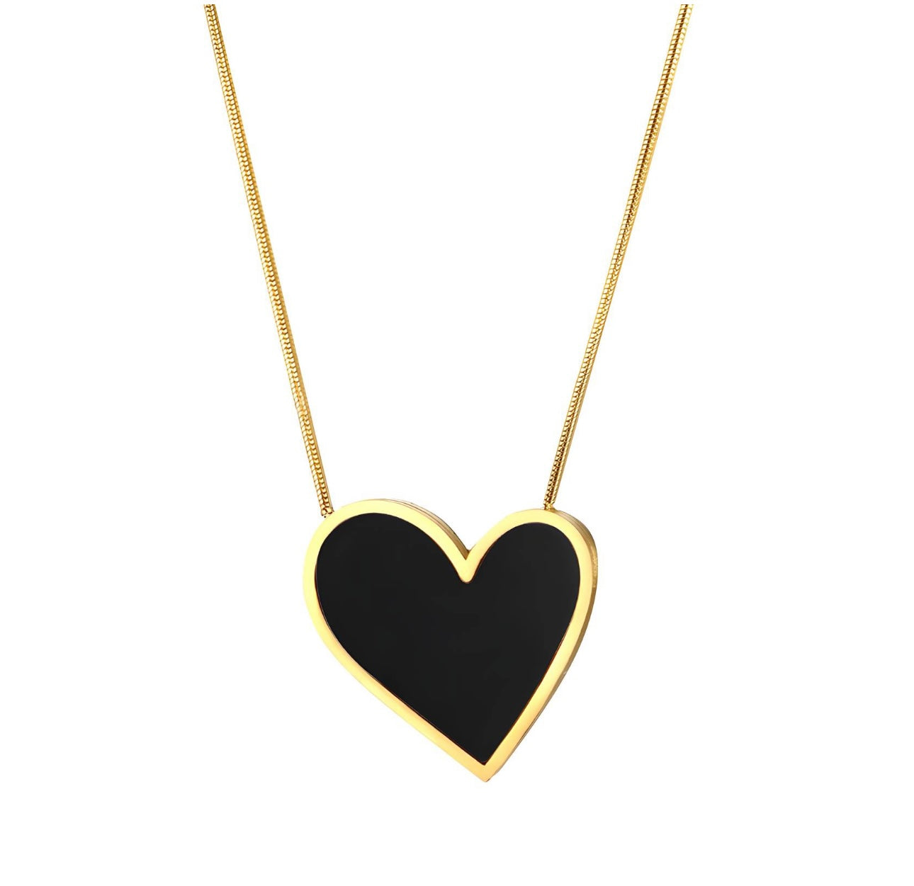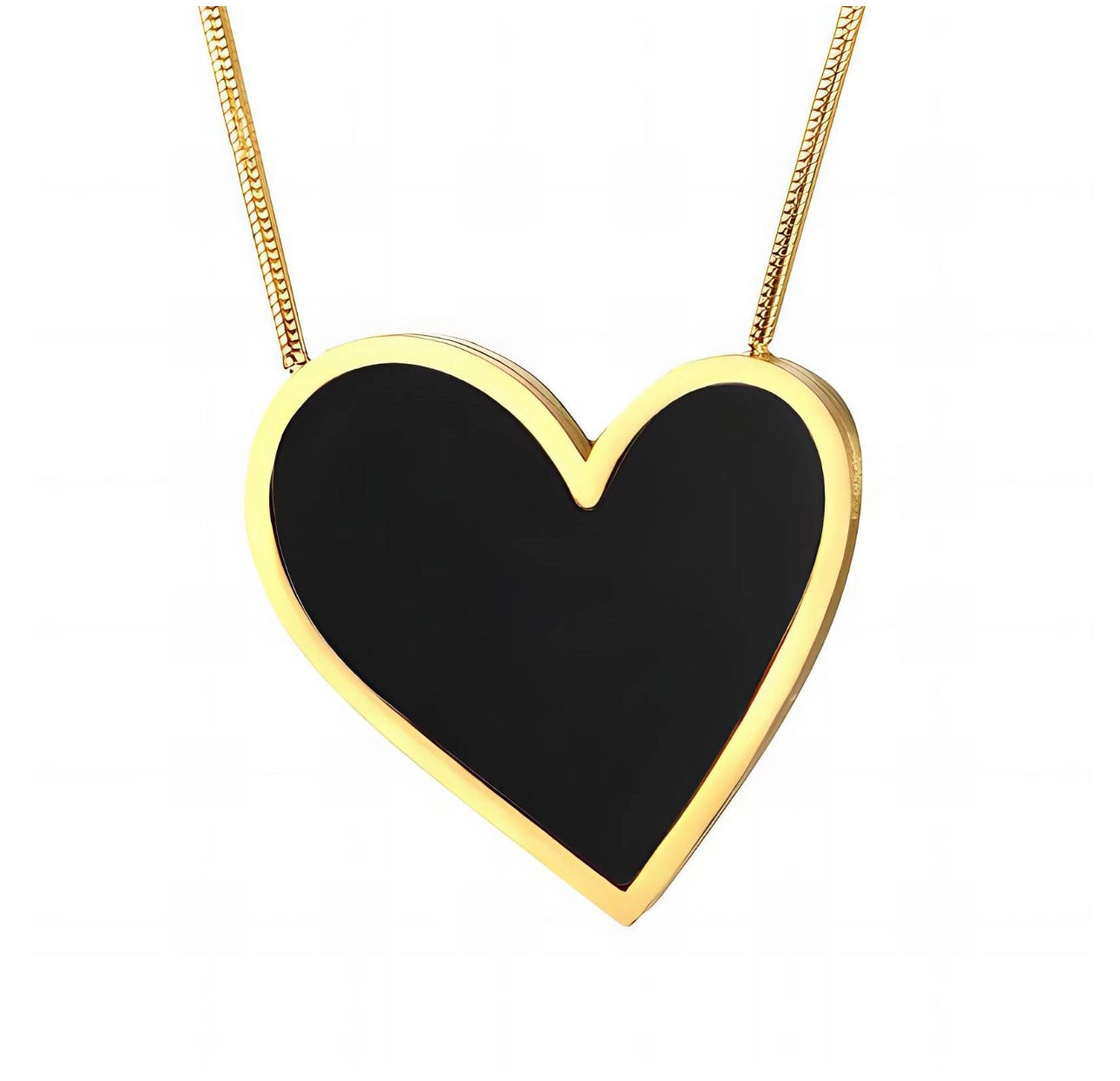 Add a touch of charm with this stunning gold heart pendant, featuring a black heart. Perfect for layering or wearing solo, it effortlessly elevates any outfit with its stylish glow. Playful and elegant, this necklace is a must-have for those who love subtle, heartwarming accessories.